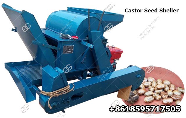 The castor bean shelling machine is composed of a frame, a fan, a shelling chamber, a feed hopper, and a discharge outlet. Since the working part of the shelling chamber is made of rubber, the purpose of removing the shell is achieved and the seed coat is not damaged.